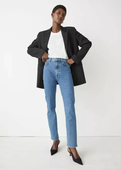 Auch & Other Stories bietet regelmäßig cleane, gerade Jeans in saisonalen Farben und Schnitten an – gerade helle Varianten sind im Sommer ein Hit.