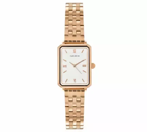 Eine goldfarbene Uhr (zum Beispiel von Carlheim) mit klarer Ziffernblatt-Optik ist ein Klassiker, der zu jedem Look passt – sie macht den Unterschied zwischen sportlich und elegant.
