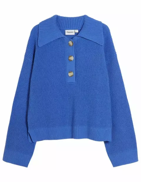 Strickpullover aus Baumwolle mit trendigem Kragen und dekorativen Knöpfen. Ein echtes Lieblingsteil für kühle Frühlingsabende!
