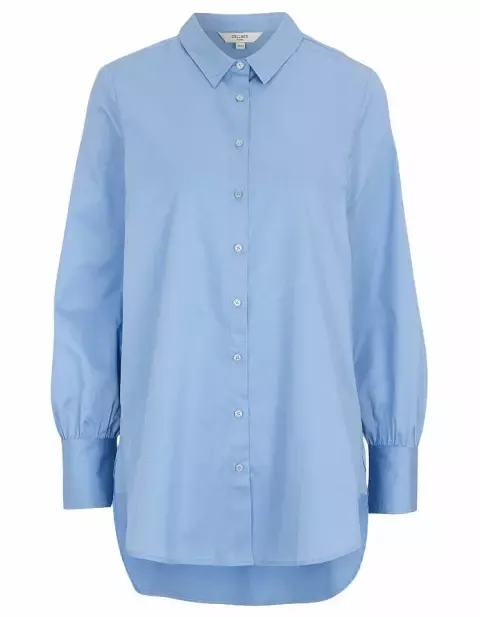 Gerade geschnittene Hemdbluse aus knackiger Baumwolle – bietet unzählige Kombinationsmöglichkeiten, im Homeoffice wie im Restaurant.
