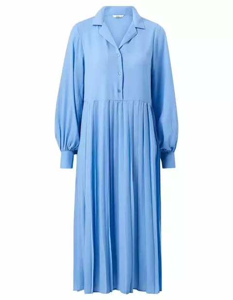 Verspieltes Hemdblusenkleid mit plissiertem Rock. Für einen femininen Look, der trotzdem unkompliziert bleibt.