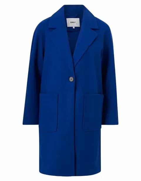 Blaue Statement-Jacke in klassischer Silhouette und kuschelig weicher Qualität. Ein Piece, das jedes Outfit sofort aufwertet.