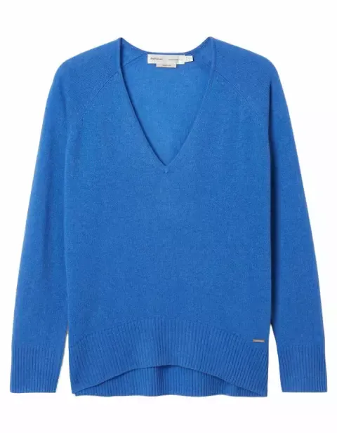 Ein Hauch von Luxus – der edle Kaschmirpullover in strahlendem Blau ist bestens für die frische Luft am frühen Morgen geeignet.