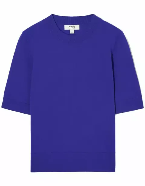 Kurzarm-Strickshirt in sattem Blau – für alle, die Basics mit dem besonderen Etwas lieben. Absoluter Favorit für den Capsule Wardrobe!