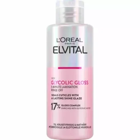 „Elvital Glycolic Gloss 5-Minute Lamination Rinse-Off von L’Oréal Paris ist eine schnelle Glanz-Behandlung, die die Haaroberfläche glättet und langanhaltenden Glanz schenkt. Angereichert mit 17 % Gloss-Komplex inklusive Glykolsäure. Wird nach Shampoo und Conditioner aufgetragen, nach fünf Minuten ausgespült und sorgt für einen Effekt, der bis zu zehn Haarwäschen anhält.“