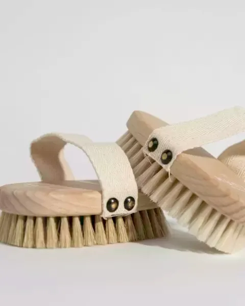 Selbst wenn die Bürste äußerlich „sauber“ erscheint: Zwischen den Naturborsten sammeln sich abgestorbene Hautschüppchen und Hautöle. Nach jeder Anwendung kurz mit lauwarmem Wasser ausspülen – ab und zu zusätzlich mit milder Seife abwaschen – fertig! So bleibt die Hautbürste hygienisch und funktioniert zuverlässig, ohne Irritationen zu verursachen.