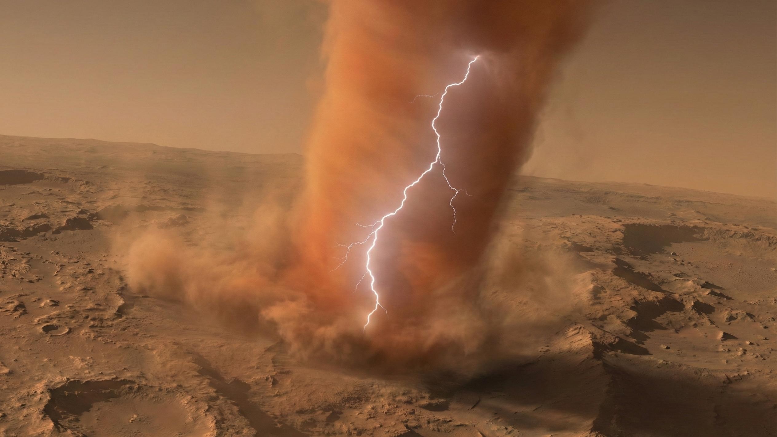 Auf der Erde treten Blitze meist zusammen mit starken Stürmen und Regen auf. Auch bei Staubdevils auf der Erde kommt es zu Reibungen zwischen den aufgewirbelten Partikeln. Im Gegensatz dazu kommt es auf dem Mars nicht zu gleichen Bedingungen, da hier Staubpartikel miteinander anstatt mit Wasser und Eis in Kontakt treten. Diese Reibung erzeugt geladene Partikel, die sich zusammenschließen und schließlich zu Blitzen werden. So entsteht das Phänomen der Blitze auf dem Mars.