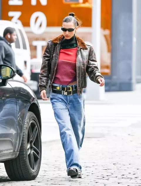 Für Model Bella Hadid reicht ein auffälliger Gürtel nicht aus – sie setzt gleich auf zwei. Die weltweit gefragte Laufsteg-Ikone macht so ihr herbstliches Outfit zum Blickfang.